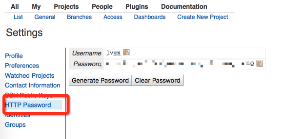 HTTP Password 密码在 账户 - ->> Settings -->> HTTP Password 处获取。