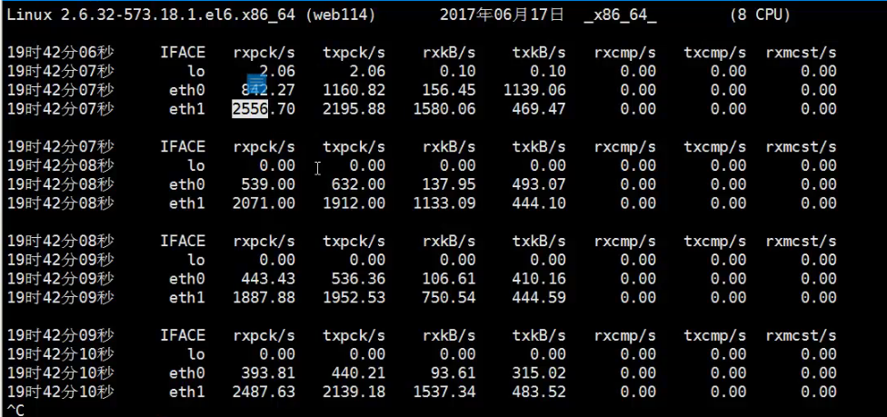 23时06分17秒 ens33 0.00 0.00 0.00 0.00 0.00 0.00 0.00