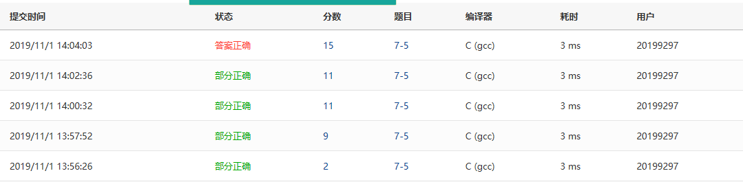 输入 输出 说明 5 25 498 69 364 94 2 3 输入的5个数中有2个是奇数3个是偶数 9 5 89 657 983 55 87 31 57 19 9 0 输入的9个数都是奇数 11 944 56 68 76 90 862 542 510 48 428 534 0 11 输入的11个数都是偶数 2.1.4PTA提交列表及说明