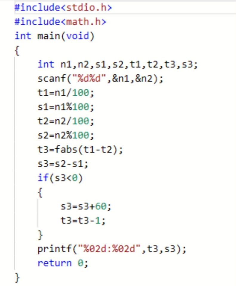 - 1.这位同学同学定义了4个变量分别计算火车运行的小时和分钟,而我只用了2个变量来计算,这样代码更简洁
