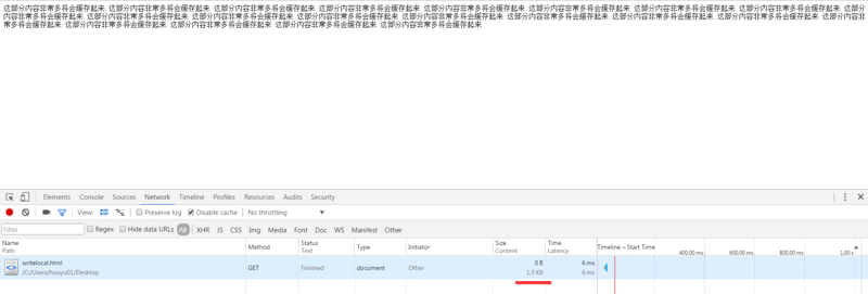 我们在php中判断,如果cookie中有version,证明种过cookie,写过local,所以,不用传内容了,直接传script就好了,如果没有就要传输并且写入。我们可以看到效果,同样的页面,第一次访问的时候,内容大小是1.6K,如图3.2.3