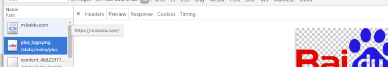 我们的logo与iconfont均是放在m.baidu.com域下的,这样节省了DNS的解析。虽然可能带来的问题是,发送图片请求的时候,会携带cookie。但是我们的cookie也是极少的。这点上性能还是有所提升的。如图3.8.1我们的logo就是在m.baidu.com域名下: