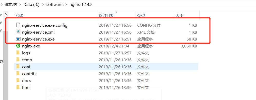 下载该工具后,将其放在 Nginx安装目录下,并重命名为nginx-service.exe,创建配置文件nginx-service.xml(名字要和工具名一样),