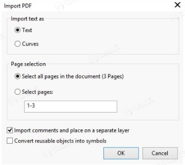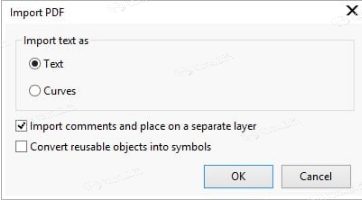 通过选择将文本导入为文本或曲线,可以获得PDF文档中文本的最佳结果。以下指针将帮助您做出正确的选择: