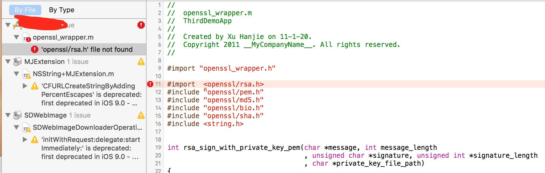 #import <openssl/rsa.h> 这个头文件找不到!!!打开SDK查找这个头文件明明在里面,Xcode却说找不到,具体问题如下图: