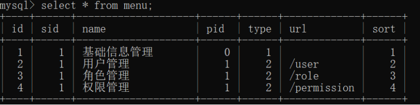 `type` tinyint(4) DEFAULT NULL COMMENT '类型(1:一级菜单 2:二级菜单)',