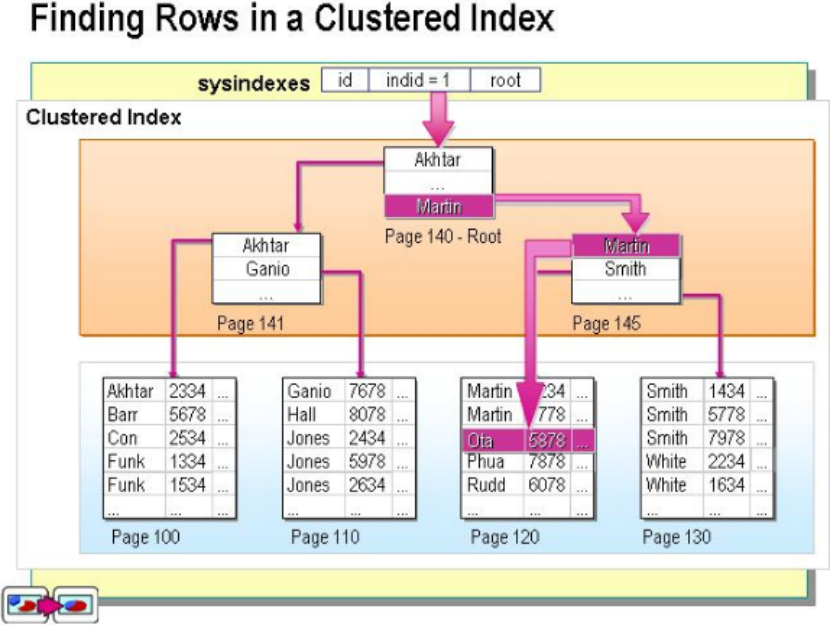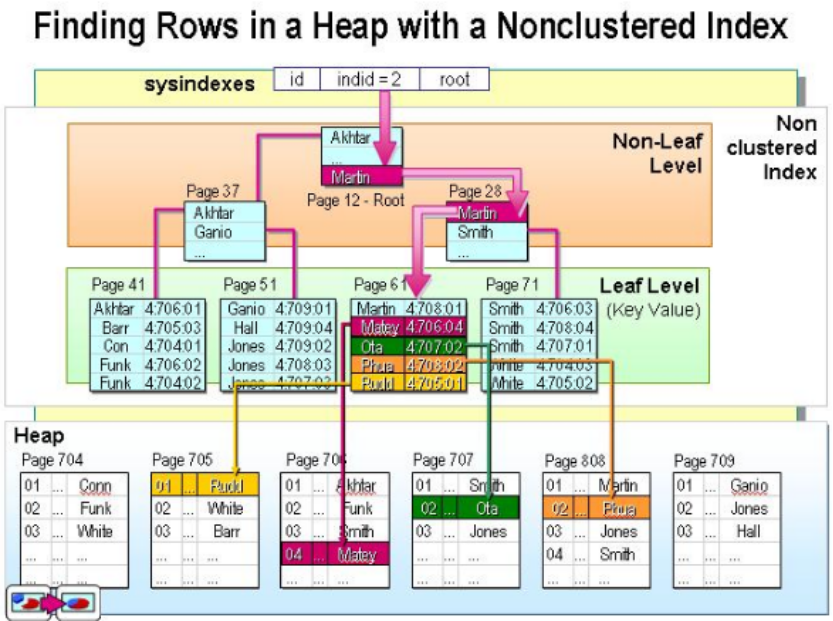非聚集索引叶节点仍然是索引节点,只是有一个指针指向对应的数据块,此如果使用非聚集索引查询,而查询列中包含了其他该索引没有覆盖的列,那么他还要进行第二次的查询,查询节点上对应的数据行的数据。