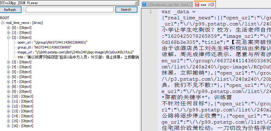 将转义后的字符串放置于JSON查看器中(以notepad++的插件“JSON Viewer”为例),则可观察到数据形式为json。