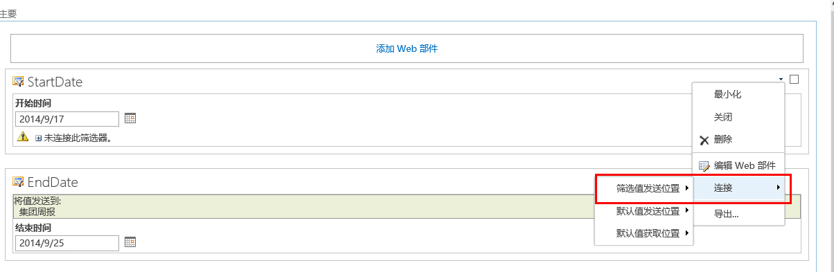 1.在视图页面添加时间筛选器webpart,用参数传入列表筛选
