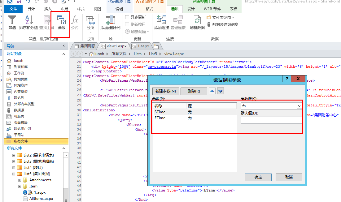 以上是第一种方式实现时间筛选,webpart的时间筛选器可以设置默认值,但是依旧无法满足要求,所以再继续第二种方式。