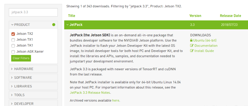 (1)下载地址:https://developer.nvidia.com/embedded/jetpack