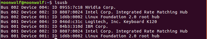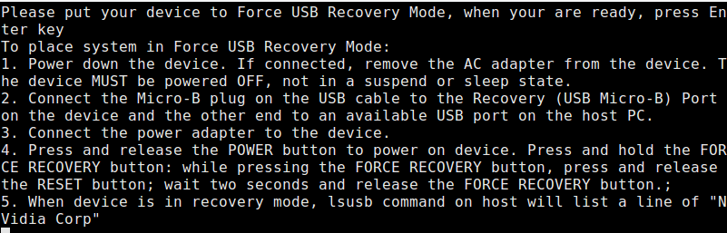 (16)再重开一个终端,输入命令:lsusb,看是否出现有 “NVIDIA Corpration”等设备,如出现则说明已成功进入Recovery模式。实际图如下