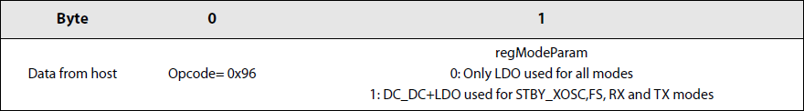 SX126xWriteCommand(RADIO_SET_REGULATORMODE, (uint8_t*)&mode, 1);