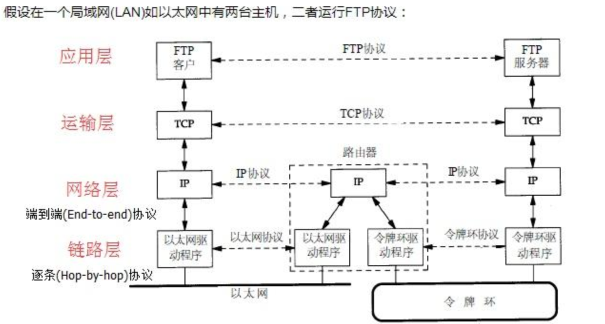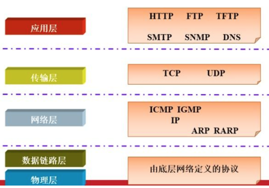 协议:FTP(文件传输协议)、HTTP(超文本传输协议)、SMTP(邮件传输协议)、DNS等