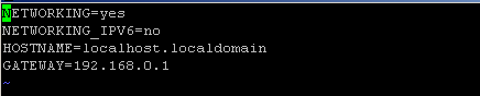 NETWORKING=yes(表示系统是否使用网络,一般设置为yes。如果设为no,则不能使用网络,而且很多系统服务程序将无法启动)