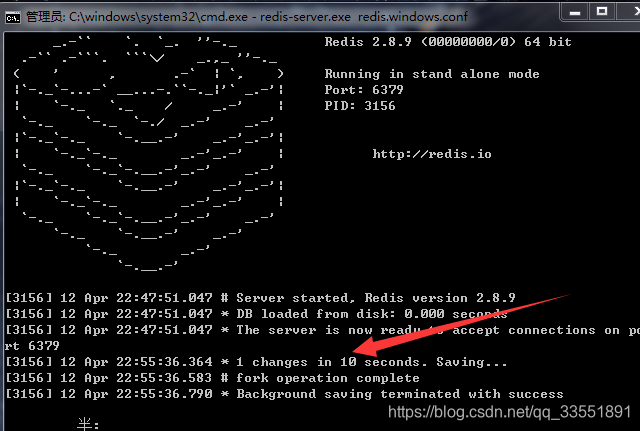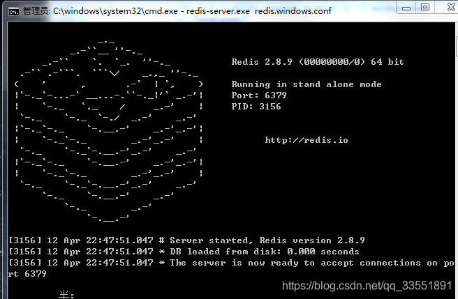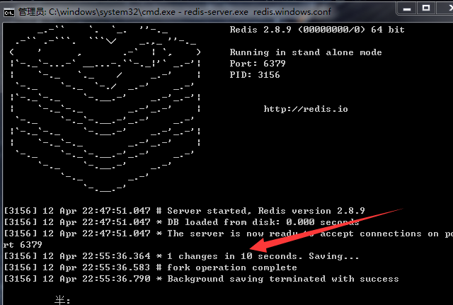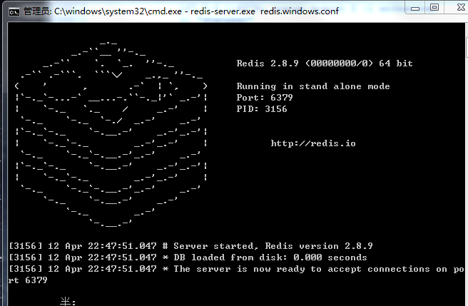 在命令行窗口输入 redis服务器所在当前窗口命令行调用redis-server.exe redis.windoes.conf