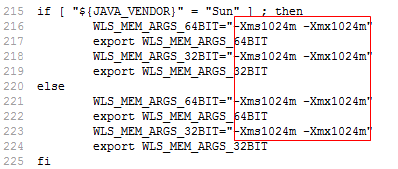 找到/home/weblogic/Oracle/Middleware/user_projects/domains/base_domain/bin下的setDomainEnv.sh文件,打开将几个内存参数修改如下: