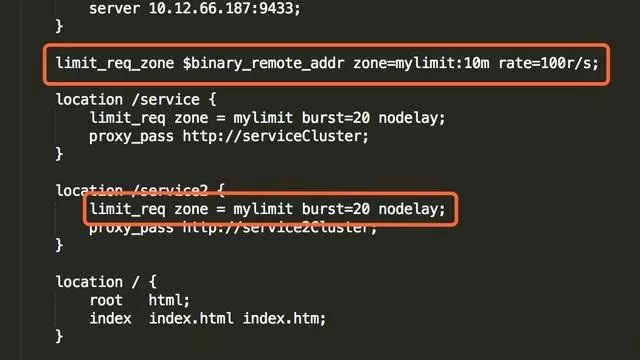 3)Rate定义最大请求速率。示例中速率不能超过每秒100个请求。