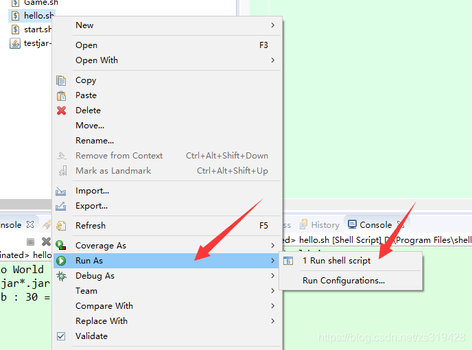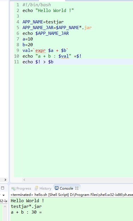 shell文件最终是要在linux运行的,在windows的eclipse中运行shell最多只能用来调试,解除一些基本的BUG,大家在这里开发完一定要在Linux下再测试一下。
