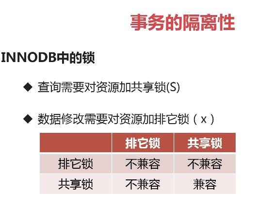 排他锁:只能由加排他锁的事务读取和修改,其他数据无法读取和修改,也无法加锁