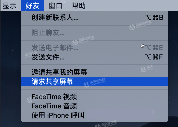 要开始使用这一功能,你需要在「信息」app 中选中相应的联系人,然后点击菜单栏中的「好友」,根据需要选择「邀请共享我的屏幕」或「请求共享屏幕」。如果你选择请求对方共享屏幕,还需要等待对方的允许。