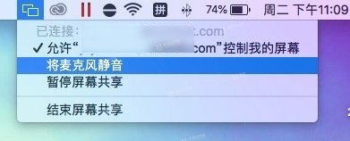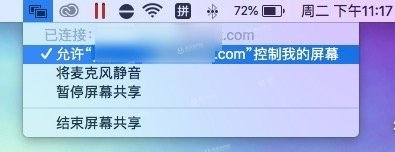 在屏幕共享的过程中,你也可以随时改变对方的权限。屏幕共享开始后,你的菜单栏会出现相应的图标,来提示你设备当前正被其他人控制。点击这个图标后,你可以选择是否继续给予对方控制权限,甚至直接终止屏幕共享。