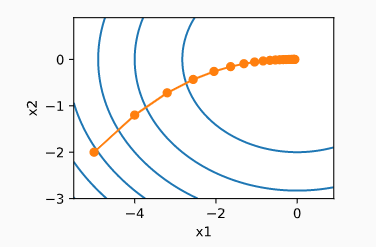 g1, g2, eps = 0.2 * x1, 4 * x2, 1e-6 # 前两项为自变量梯度