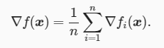 如果使用梯度下降,每次自变量迭代的计算开销为O(n),它随n线性增长。因此,当训练集很大时,梯度下降每次迭代的计算开销很高。