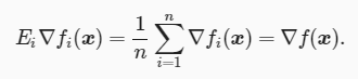这样每次迭代的计算开销从梯度下降的O(n)降到了常数O(1)。值得强调的是,随机梯度fi是对梯度f的无偏估计: