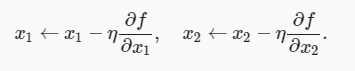 return (x1 - eta * 2 * x1, x2 - eta * 4 * x2, 0, 0)
