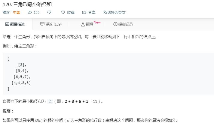 由解法1可以看出,triangle[i][j]的最短距离依赖i+1层的正下方和右边,