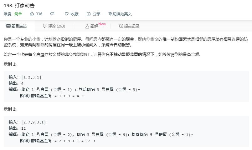 设rob[0.n]为偷取[0..n]房子的最佳策略,v[0...n]为房子东西的价值