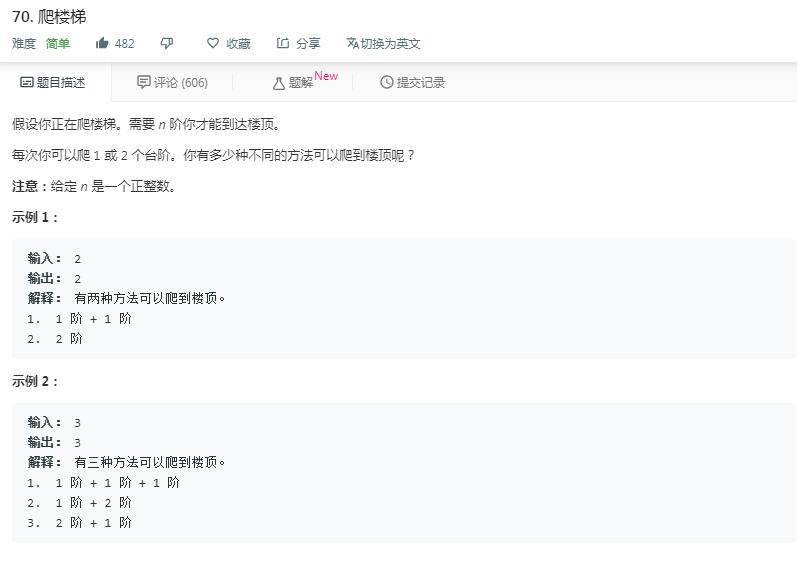 例1)每次可以爬 1 或 2 个台阶,则c(n)=c(n-1)+c(n-2)