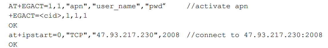AT+IPSTART=0,"TCP","域名/IP地址",端口号,建立连接就OK了