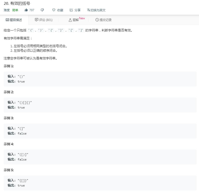 思路:遍历字符串,如果是左括号则放进栈中,如果是右括号则从栈中推出元素,看两者是否匹和,