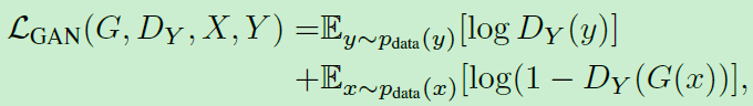 CycleGAN的训练的损失函数如下所示(截图来自论文):