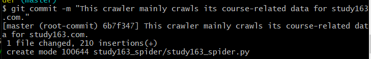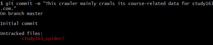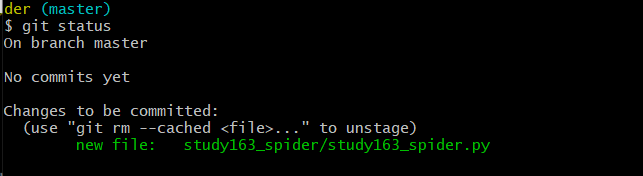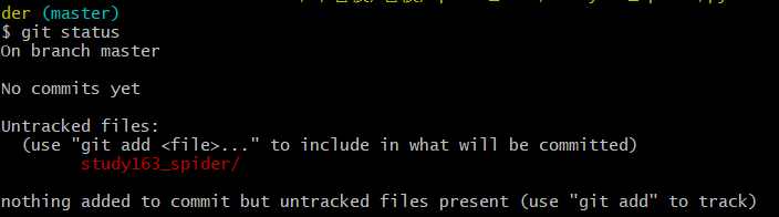 则按照提示,输入命令git add study163_spider,之后再输入git status会出现: