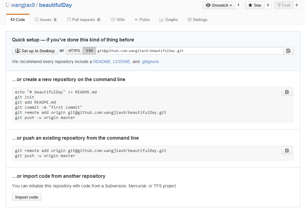 这个时候文件已经存放到本地仓库了,如果想要push到github上,则输入: