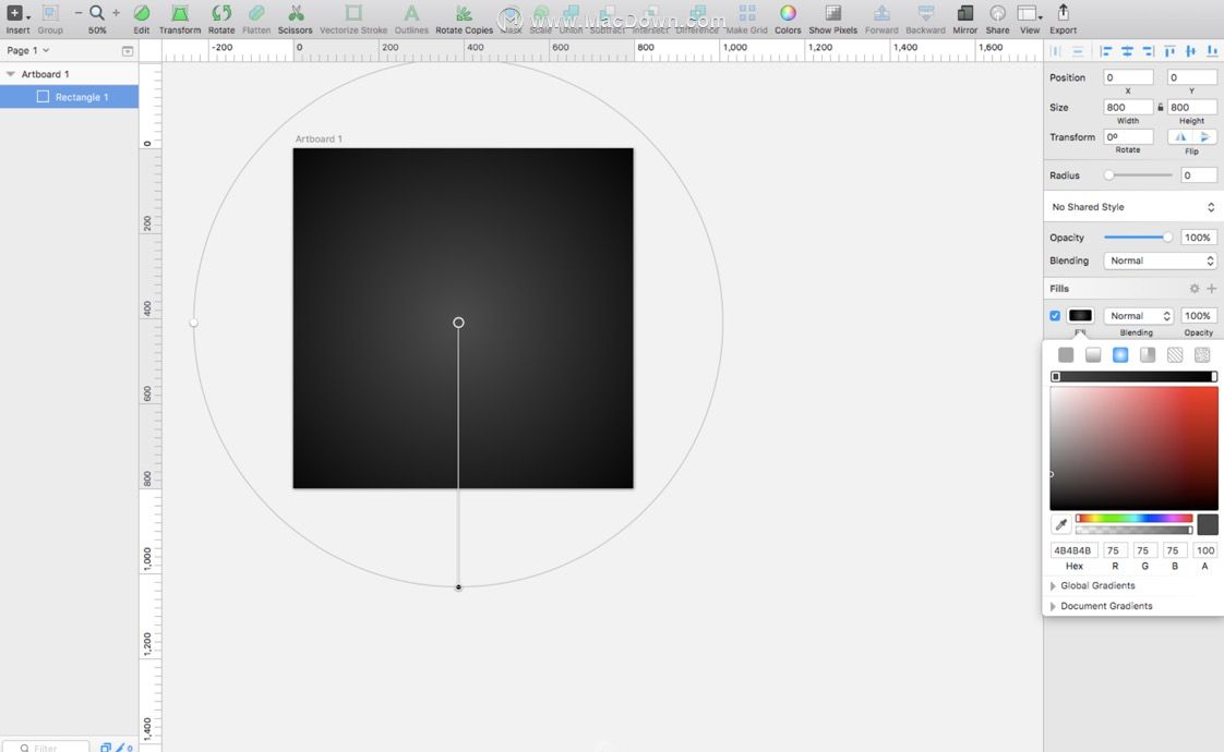 1、打开sketch,新建一个Artboard(800x800),为了制作教程,所以我先做了一个背景,我们真的在制作图表时,其实不用考虑背景,也不需要做这么大分辨率的,多大分辨率sketch有各种尺寸,自行选择。