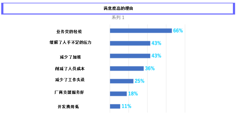 已经导入RPA的企业中,有59%的企业对导入效果感到满意,79%的企业希望未来AI和RPA结合后将进一步加大对RPA的投入。