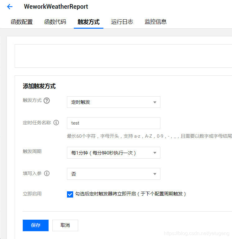 最后,在腾讯云的控制台中添加触发方式,测试通过后本次目标宣布正式达成。