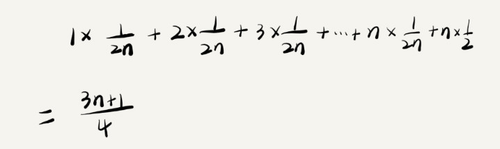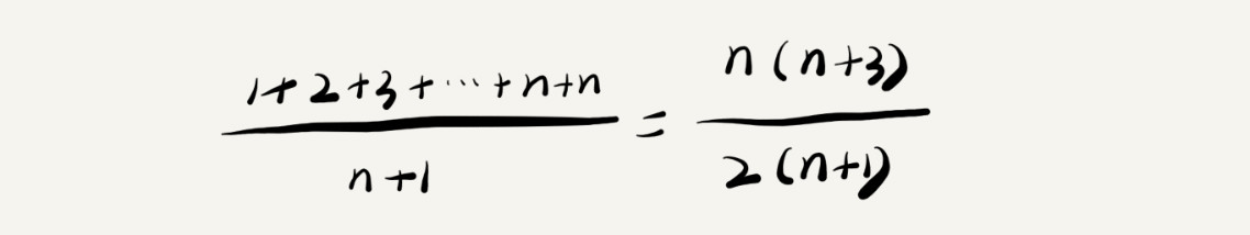 要查找的变量 x 在数组中的位置,有 n+1 种情况:在数组的 0~n-1 位置中和不在数组中。我们把每种情况下,查找需要遍历的元素个数累加起来,然后再除以 n+1,就可以得到需要遍历的元素个数的平均值,即: