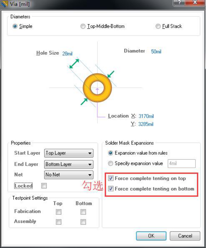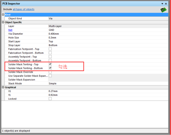 按照上面三步骤勾选红色框选项,再转出Gerber成品过孔焊盘就是盖油。
