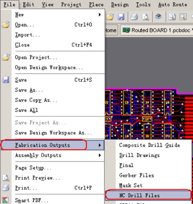 钻孔文件转换,点击FileàFabrication outputsàNC Drill Files