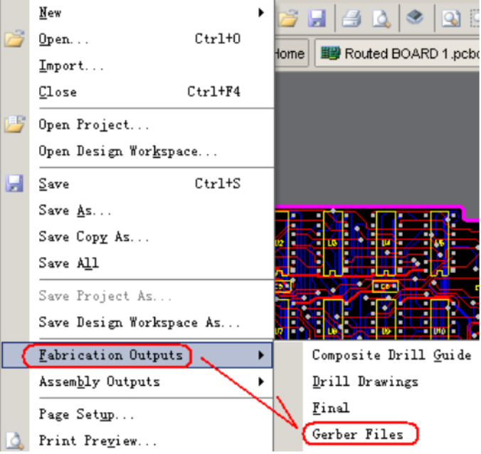c、开始转Gerber File,点击File--Fabrication outputs--Gerber Files