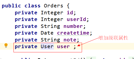 在orders类中, 增加 级联属性User user;