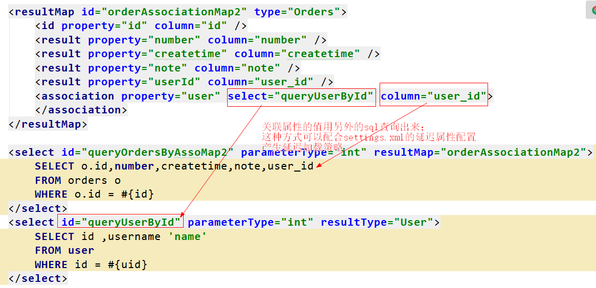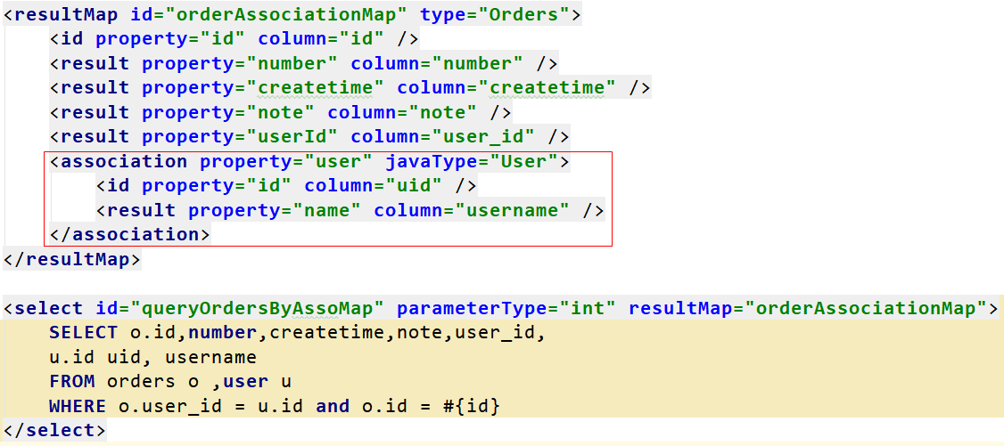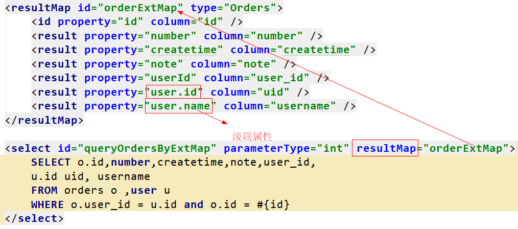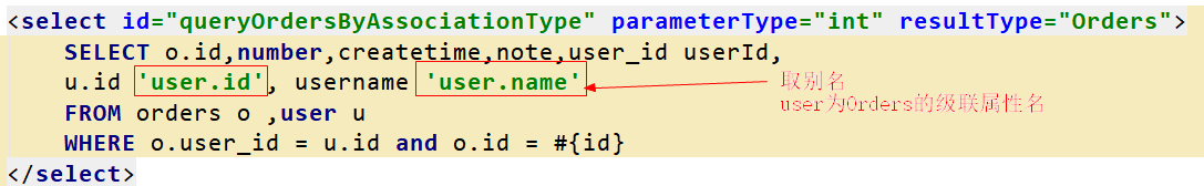 <select id="queryOrdersByType" parameterType="int" resultType="OrdersExtByColumn"> |