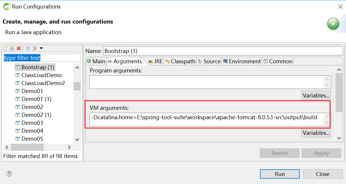 另外:还需要设置一个jvm启动参数-Dcatalina.home=E:\spring-tool-suite\workspace\apache-tomcat-8.0.53-src\output\build。 这个路径就是ant编译后生成的这个路径。