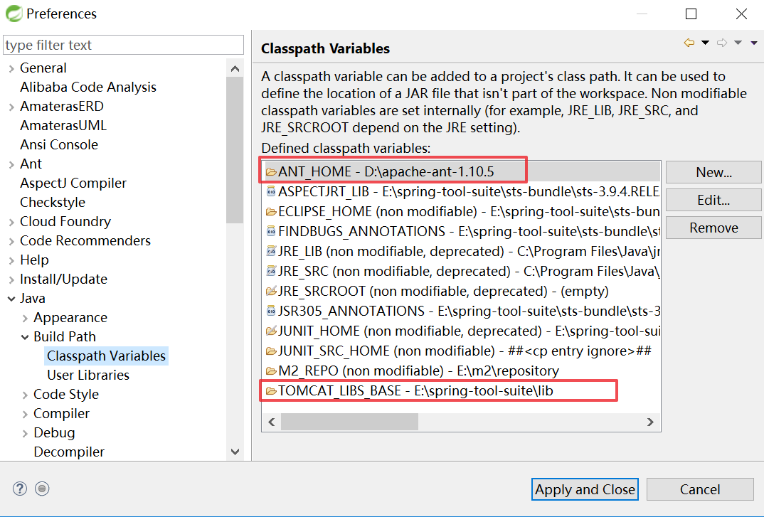 7.在eclipse中设置ANT_HOME和TOMCAT_LIBS_BASE这两个环境变量。