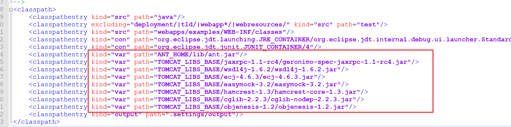 里面配置了tomcat运行环境所需要的依赖包。